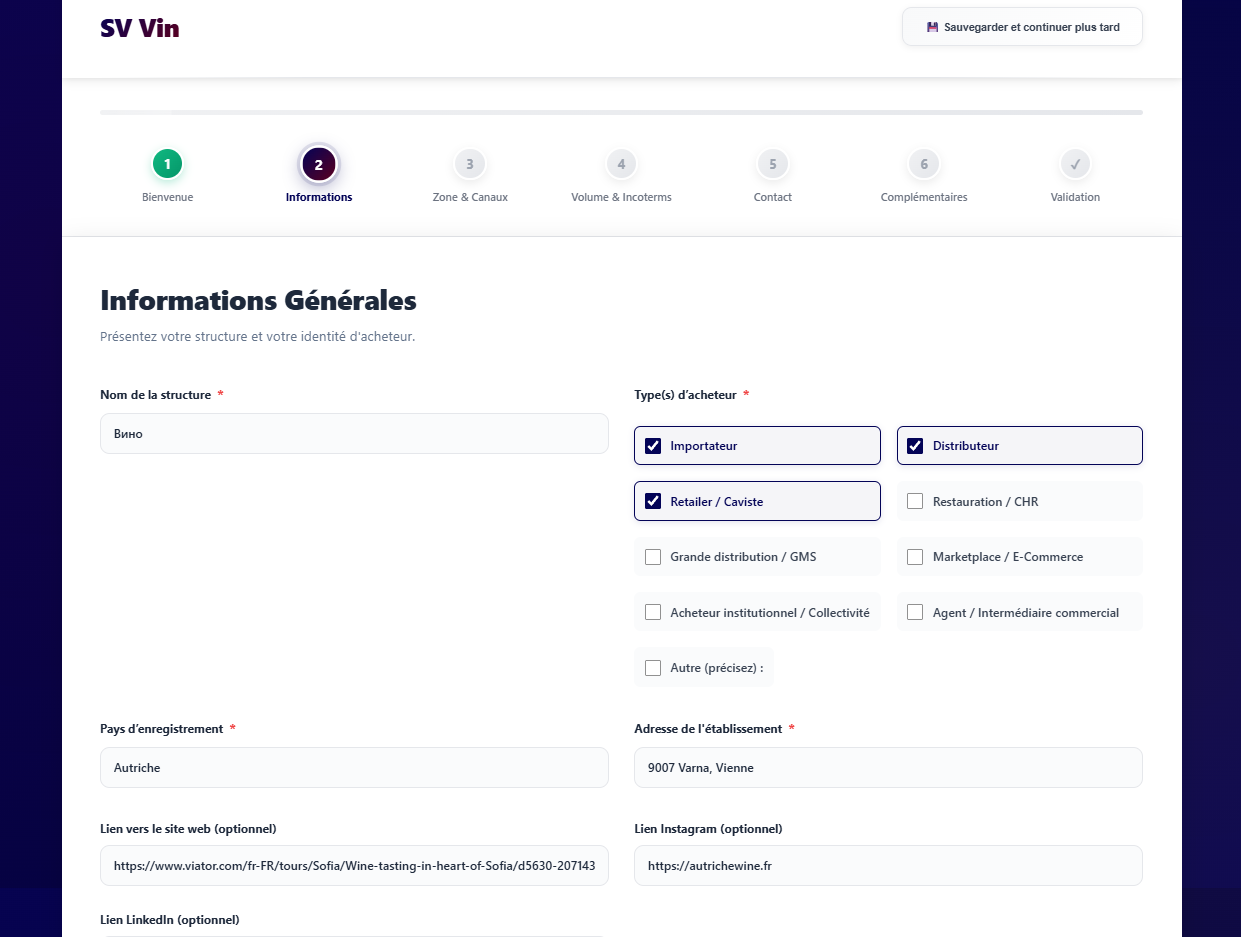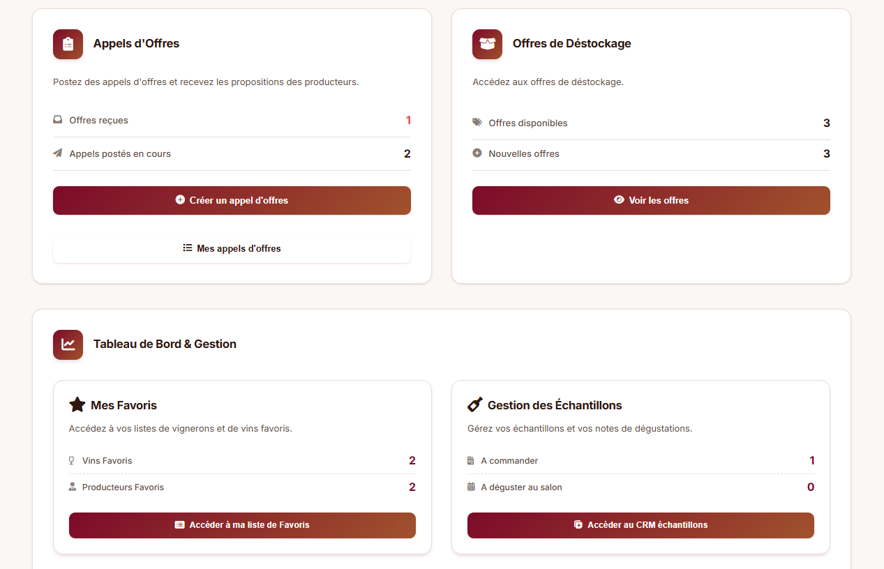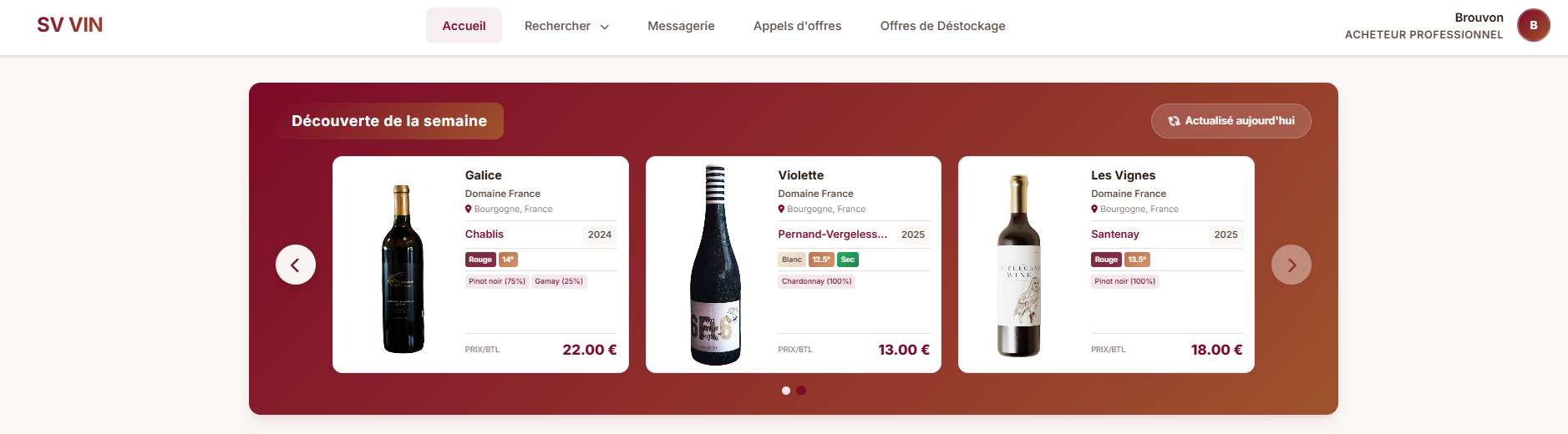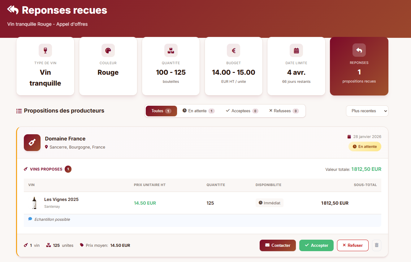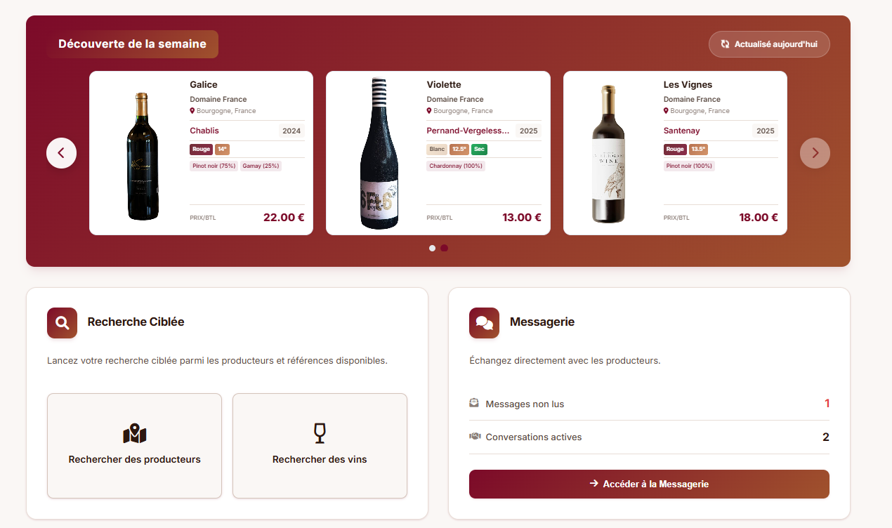 Découvrez les fonctionnalités de SV Vin, une plateforme conçue pour aider les acheteurs professionnels à identifier des vins adaptés à leurs besoins, à structurer leurs recherches et à centraliser leurs échanges B2B.
