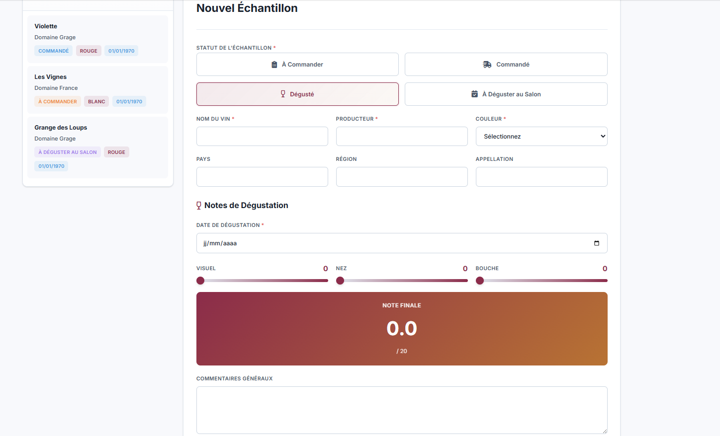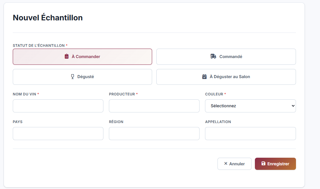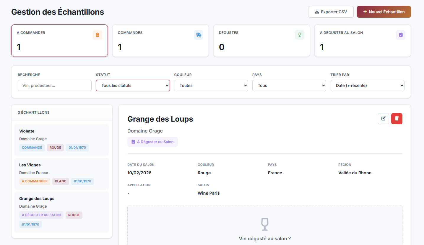 Gérez vos demandes d'échantillons, suivez vos échantillons à commander, commandés, ceux à déguster au salon, et enregistrez vos notes de dégustations. Le tout avec un système filtrable pour une organisation optimale.
