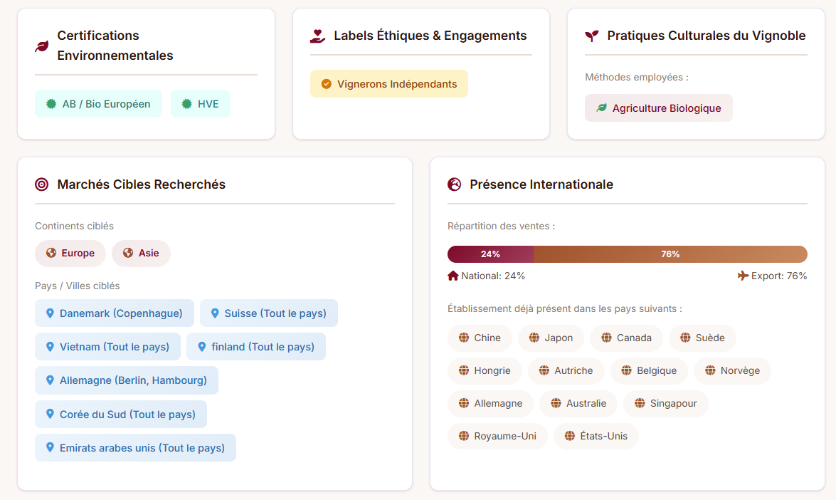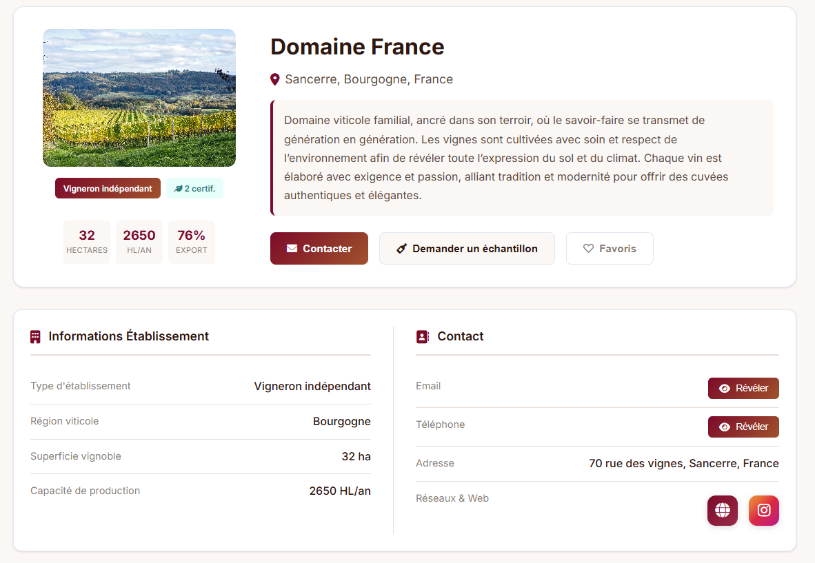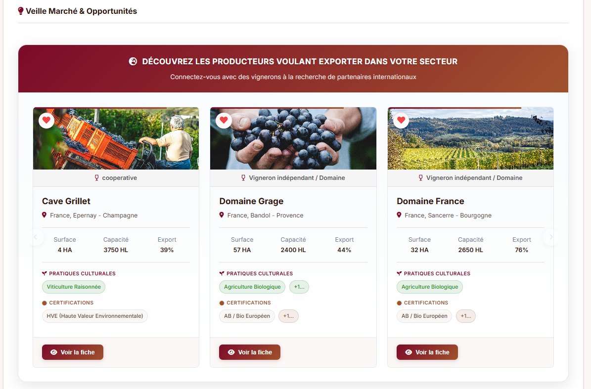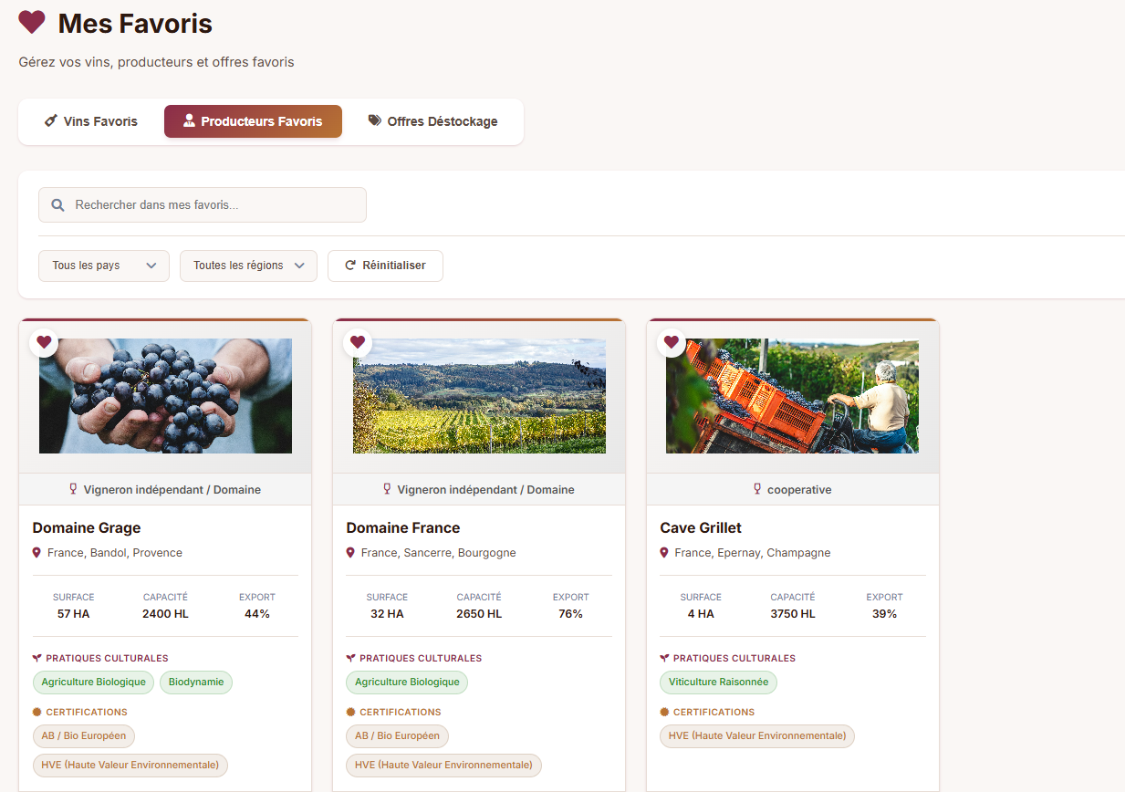 Des filtres B2B avancés pour identifier rapidement les vins adaptés à vos attentes, avec toutes les informations essentielles accessibles instantanément.