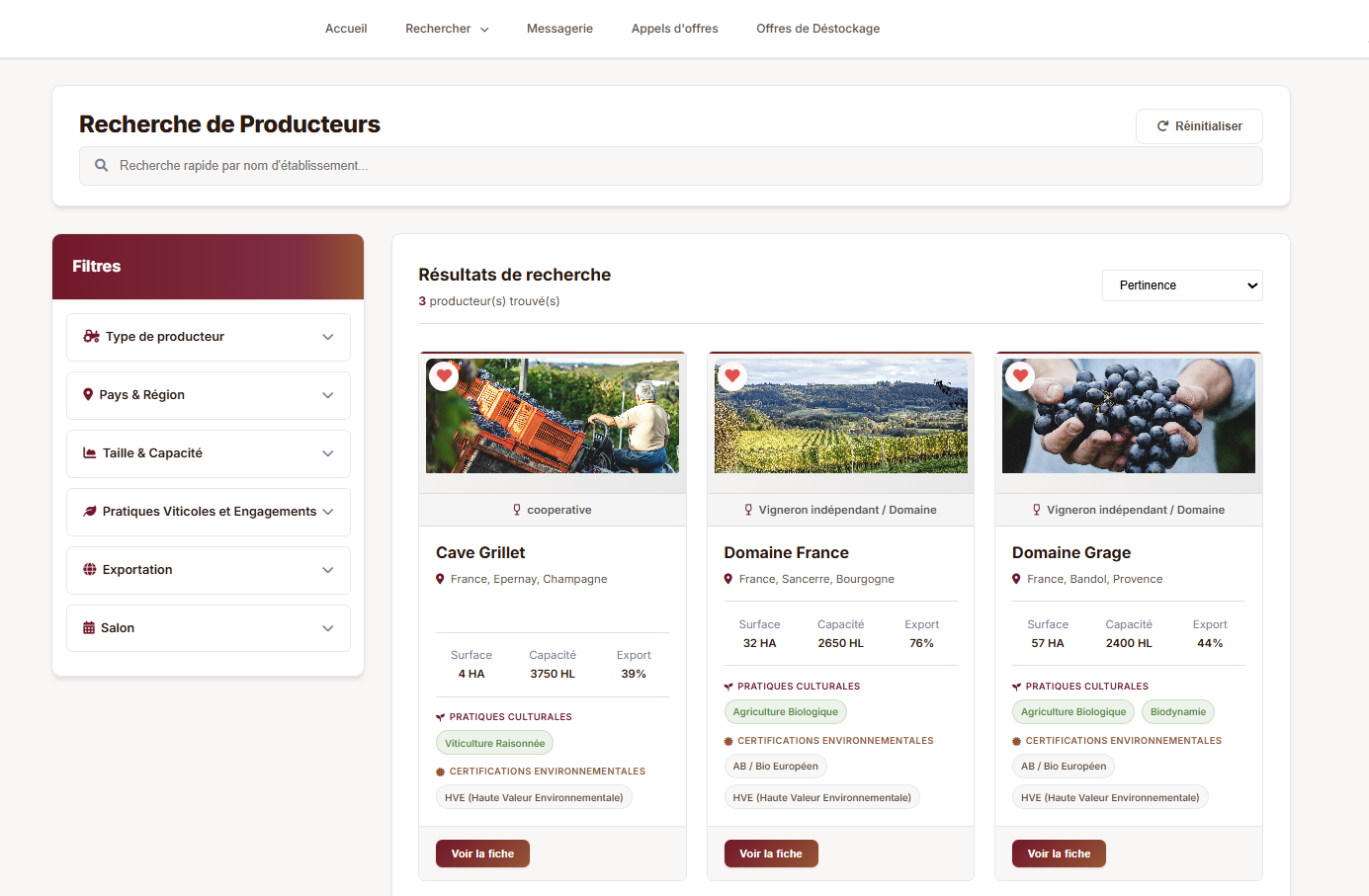 Trouvez rapidement des producteurs adaptés à vos besoins grâce aux filtres, et accédez à toutes les informations utiles en un clic.